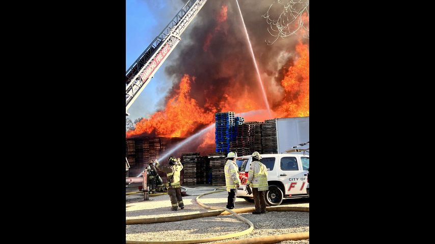 Photos: Crews tackle massive fire at Hammond pallet supplier Thursday evening