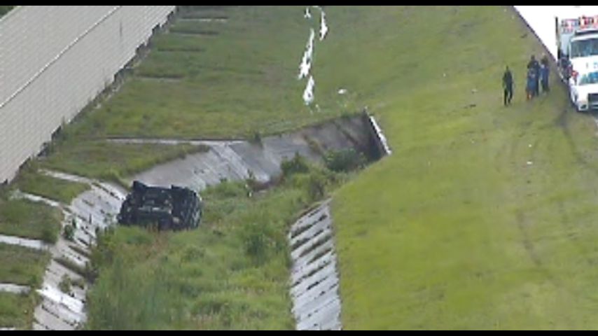 BATON ROUGE - Emergency responders are on the scene of a crash involving an overturned car in a ditch along I-12.
