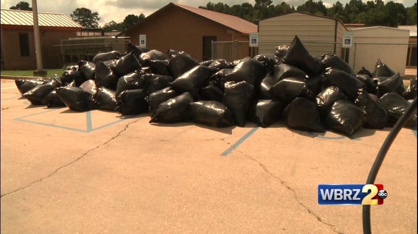 ST. AMANT - Piles of large trash bags filled with discarded insulation were taken from Lake Elementary School in St. Amant Saturday.
