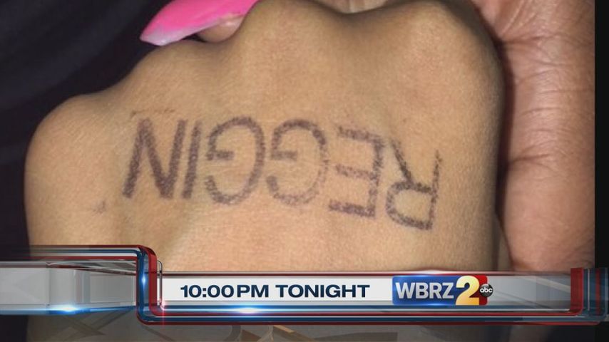 The stamp, for Reggie's in the Tigerland area, should read "REGGIN," a term college students said has become a phrase used to describe the act of being at the specific bar. But, when spelled backwards or stamped upside down on hands, it appears as a derogatory word.