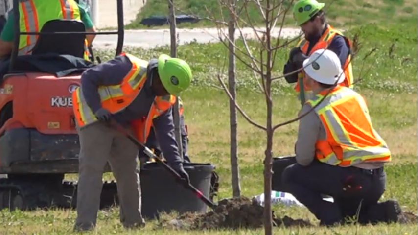 BATON ROUGE — Local nonprofit Baton Rouge Green began the process of planting hundreds of trees at the I-10/I-12 split on Tuesday.