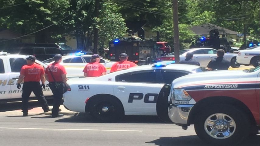 An exchange of gunfire was heard around 4 p.m. Sunday in video recorded by a WBRZ news crew at the scene. Sounds on the video captured by a WBRZ news crew on the scene last about 3 seconds and appear to record a handful of shots.