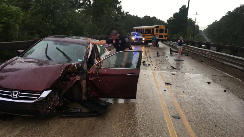 Witnesses say 26-year-old Alexandra Alley of Baton Rouge was traveling southbound when she crossed the centerline into the path of the bus. The collision snapped one of the wheels off the bus and sent it spiraling into an unmarked Louisiana Probation and Parole police vehicle.