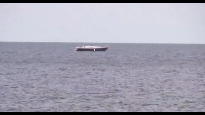 Authorities say the 34-foot vessel was first spotted just before 6 p.m. Sunday. The boat was "uncrewed", but a dog and cell phones were found on board.