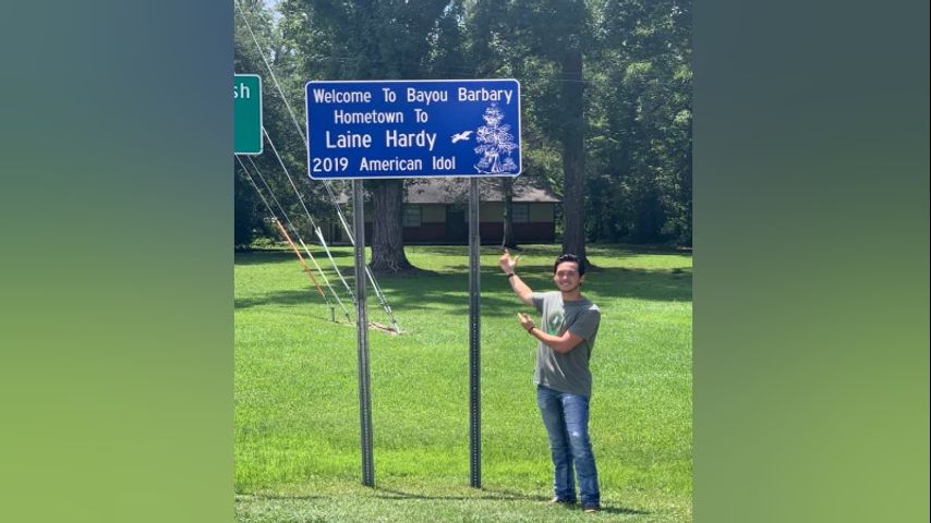 The town put up a sign this week welcoming people to Bayou Barbary: "The Hometown of Laine Hardy, 2019 American Idol."