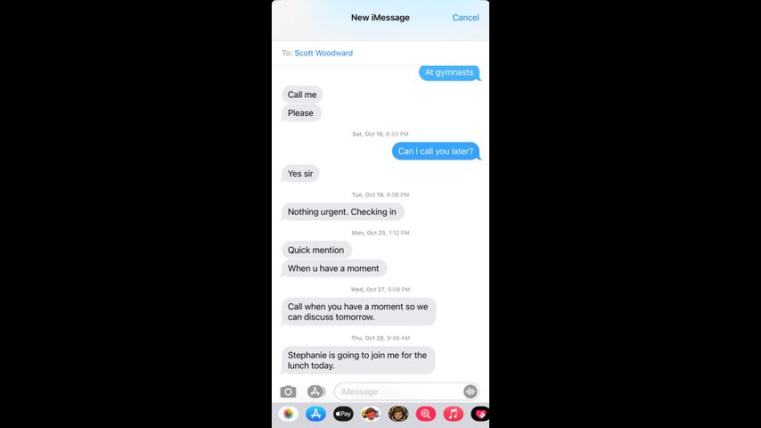 “I have a quick question when you have a minute,” Woodward texted Tate on Oct. 6. There was no additional public communication between the men until Oct. 7 when, again, Woodward asked for a minute of Tate’s time. The next text message entry is three days later.