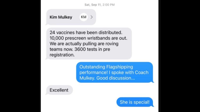 In a string of text messages, Woodward and Tate share their fondness of new LSU Women’s Basketball Coach Kim Mulkey. After Woodward had to send Tate her number in September, Tate wrote back, “outstanding flagshipping [sic] performance! I spoke with Coach Mulkey. Good discussion…”