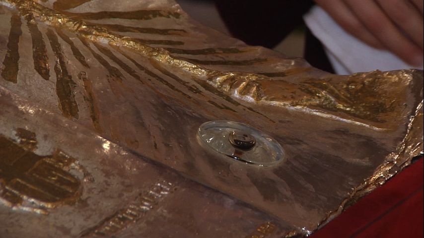 The relic, a vial of the Pope's blood before his death, was put on display near the church's altar. It's an item that some believers say can perform miracles.