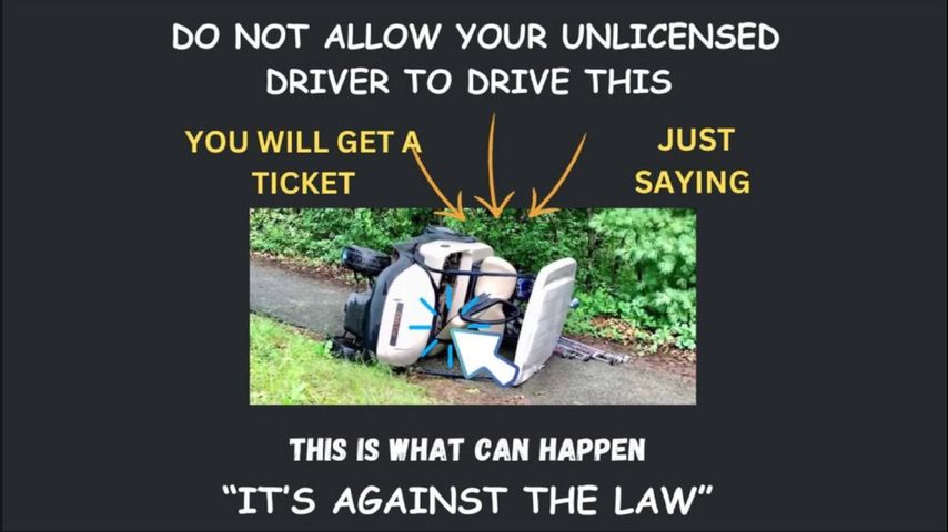 Parents are also encouraged to be responsible and not let children drive any of these vehicles without a license, any child's parent who is caught doing this will be issued a traffic ticket.
