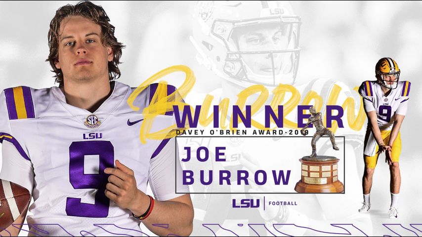 ATLANTA - Add it to the list. Joe Burrow is officially the recipient of the 2019 Davey O’Brien National Quarterback Award winner, becoming the first Tigers player ever to claim the prestigious quarterback trophy.