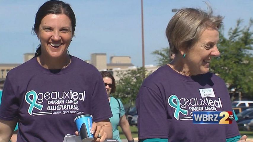The Geaux Teal walk is a symbol of how Beth was there for her mother during her fight, now both here together, giving hope to other women with ovarian cancer.