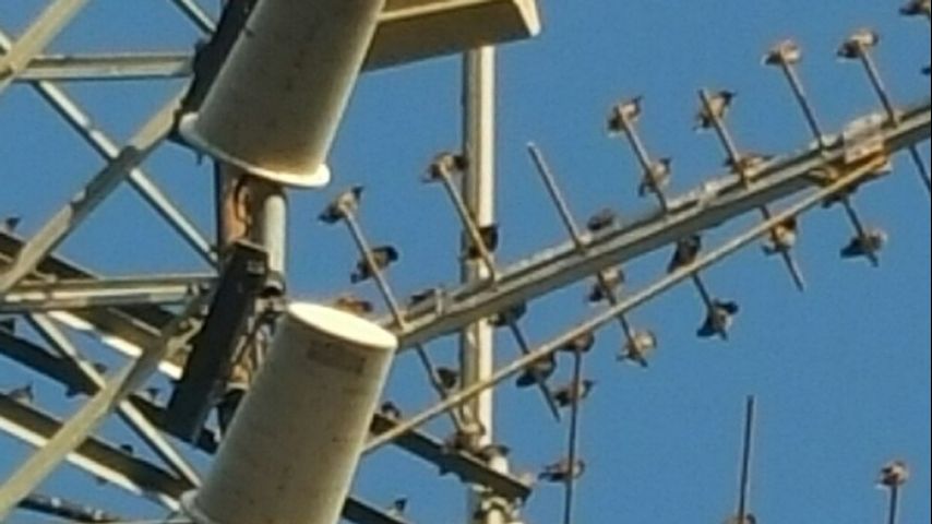 The engineer said he could scare the birds off and the signal would clear up, but once the birds settled back onto the antenna the signal would drop again.