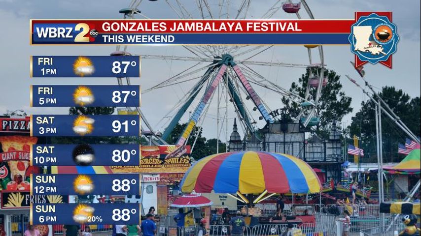 Those leaving the Baton Rouge area for a coastal destination will enjoy mostly sunny skies and temperatures in the low 80s. You will notice pretty stiff southwesterly winds of 10-15mph. Water temperatures will be in the upper 70s with waves running 1 to 3 feet.