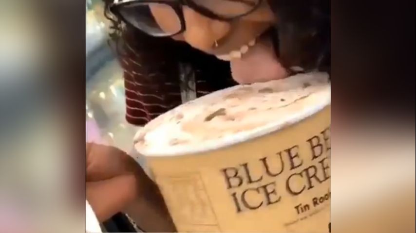 On Monday, a message appeared on the company's website in response to a video that got more than 10 million views on social media over the weekend. The video shows an unidentified woman drag her tongue across the ice cream, put the lid back on and place it back on the store shelf.