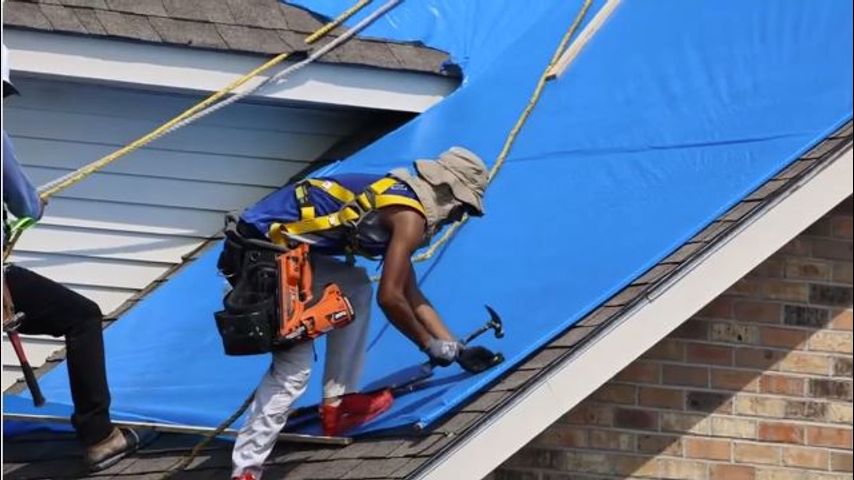 "It's' a temporary fix, and it's good for 30 days to give you time to get your insurance company to pay and put your new roof on," Tim Arnold with Corps of
