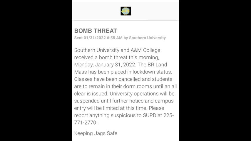 BATON ROUGE - Southern University's campus was shut down early Monday morning amid a series of reported threats at historically Black colleges across the country.