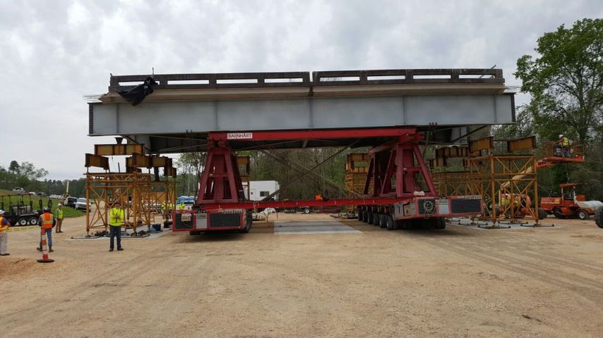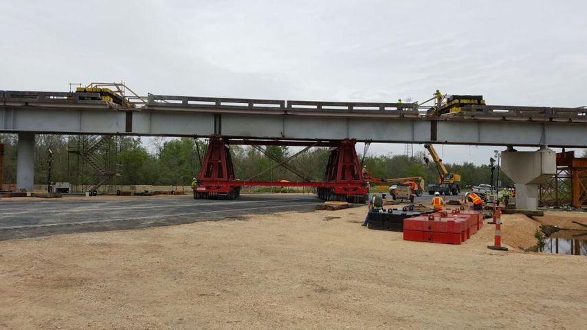Crews removed a damaged part of a bridge above travel lanes, and shifted it to make the repairs.  Photos shared with WBRZ this weekend showed how the work was being performed.