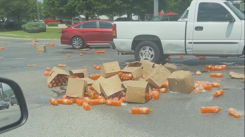 Pictures and videos shared with WBRZ show boxes of orange soda spilled in the intersection of Coursey Boulevard and Airline Highway.
