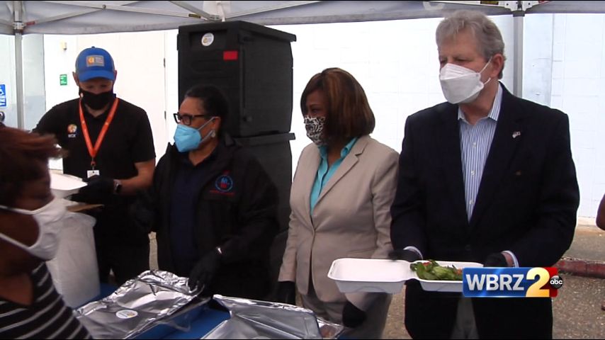 Mayor Broome and Secretary Marcia Fudge along with Senator John Kennedy and Congressman. Troy Carter served lunch for residents at the Guste Senior Housing Authority,