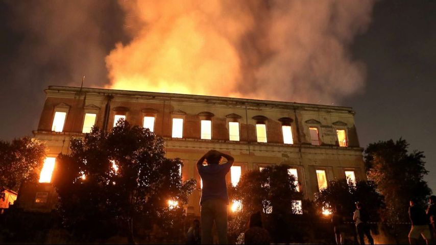 A fire destroyed an entire collection of more than 20 million historical pieces at Brazil's National Museum in Rio de Janeiro Sunday night -- including a 12,000-year-old fossil called Luzia which is the oldest dated skeleton in the Americas -- an incalculable loss for the Brazilian people.