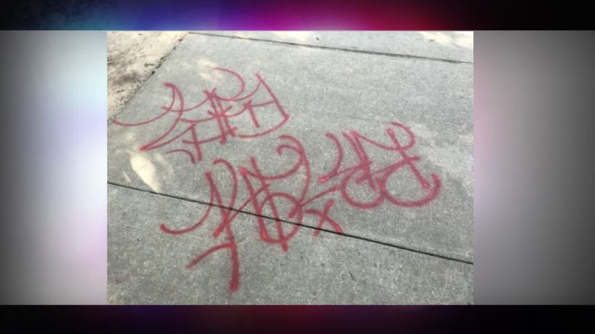 The images above show the graffiti, which was sprayed onto a brick wall outside of a public restroom and a piece of playground equipment sometime over Wednesday night or in the early morning hours of Thursday. Tagging also appeared on a sidewak in the park. Crews were already working on removing the graffiti when News 2 reached out for comment at around 9 a.m. Thursday. By 9:30 a.m., pressure washing operations were already underway.