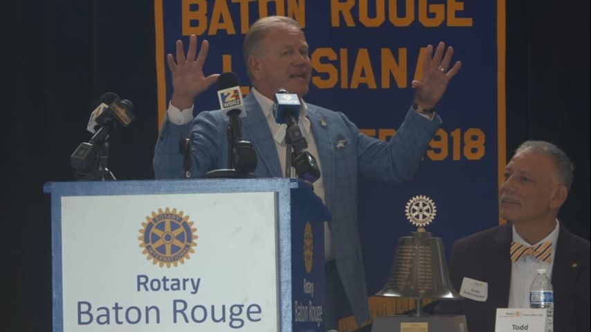 BATON ROUGE — LSU Head Coach Brian Kelly ecstatically announced that "it's football season" in an appearance before the Rotary Club of Baton Rouge at Tiger Stadium on Wednesday.