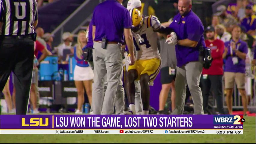 Just as the fourth quarter was starting for LSU, tight end Trey'Dez Green was injured blocking on a run play and went to the ground grabbing his leg.