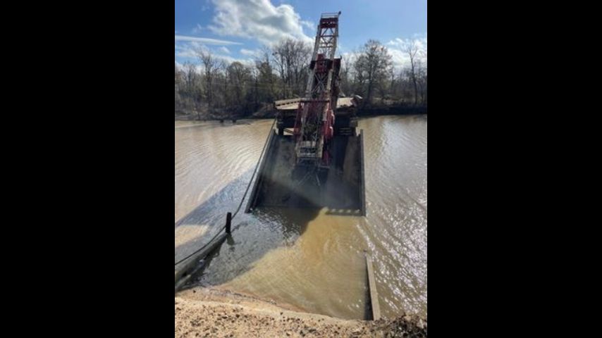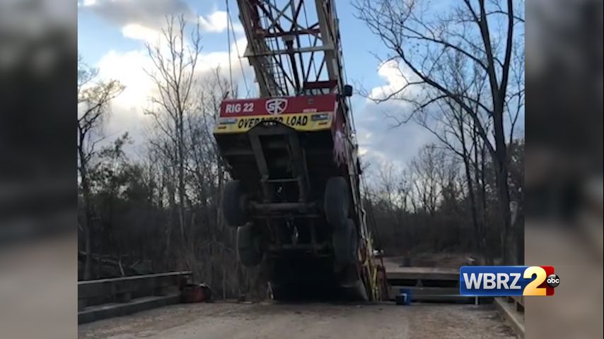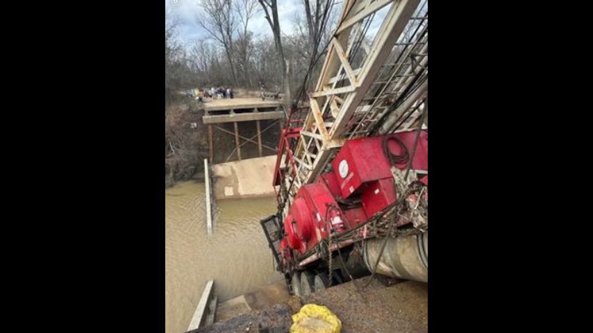 The Mississippi Emergency Management Agency says the Jackson Point Bridge collapsed around 10:30 a.m. as a truck carrying an oil rig was trying to cross. Video shared by the agency showed the truck nose-down, hanging over the edge of the collapsed bridge.