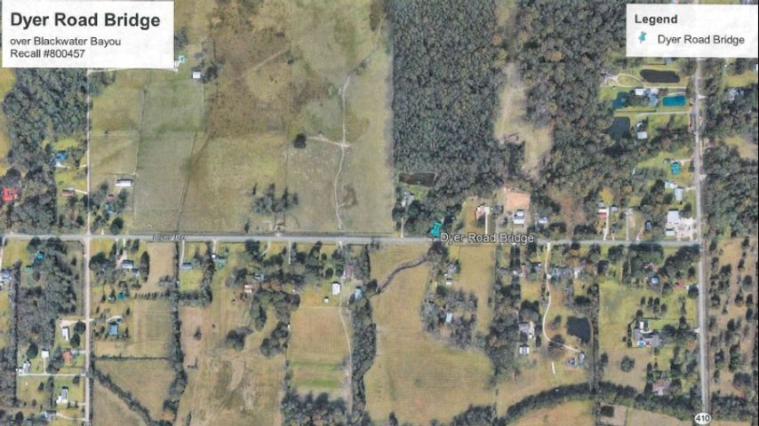 Officials say an average of 2,000 vehicles drive on the bridge each day. Detour options include Plank Road, LA 64 and Blackwater Road to the north of Dyer Road and Plank Road, Pettit Road or Comite Drive and Blackwater Road to the south of Dyer Road.