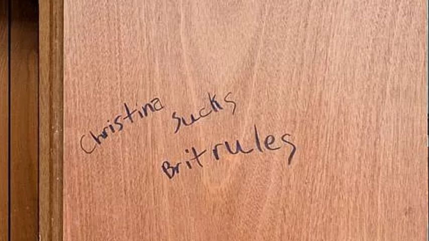 Photos show a spacious dance studio inside the home, along with at least one bit of graffiti that appears to reference a rivalry between Spears and another pop singer to emerge in the 1990s.