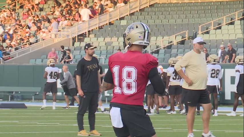 The Saints used trickery to take an early 7-3 lead. Running back Kendre Miller took what looked like a toss sweep to the right before throwing a lateral back to his left, where Rattler caught it and threw 30 yards downfield to wide-open tight end Foster Moreau in the end zone.