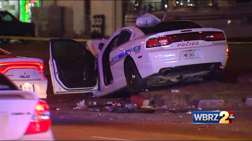The wreck happened on Greenwell Springs Road, just east of Airline Highway, around 10 p.m. Thursday. Video from the scene showed a fully-marked BRPD patrol unit with its front end smashed.