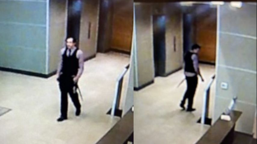 Police said the person, who was caught on surveillance cameras Oct. 17, walked into a building on North Street between River Road and Lafayette Street, went to the ninth floor and pulled out a sword.