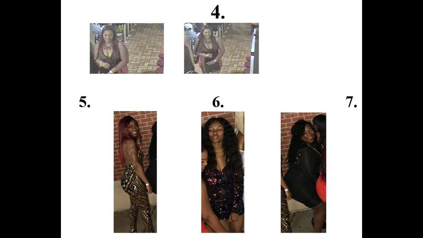 Police say surveillance video from the business captured parts of the brawl, which involved 10-12 female aggressors jumping five female victims. A man was also seen stealing items from a victim's purse during the fight. Photos released by BRPD show what appear to be eight of the suspects.
