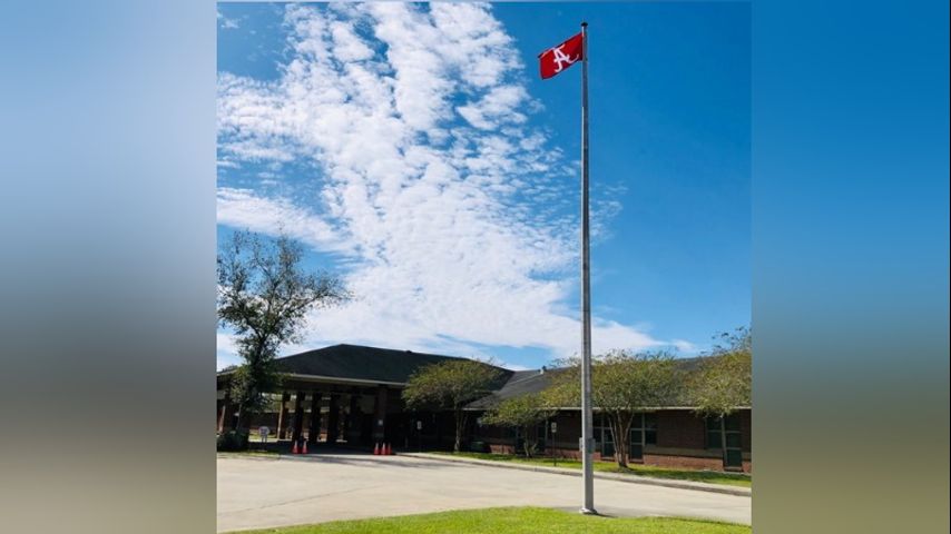 Ahead of Saturday's LSU vs. Bama game, school officials set up an Alabama flag in Brusly Elementary's front lawn and then challenged the public to help them bring it down by donating to the school until they reached the goal of $2,700.
