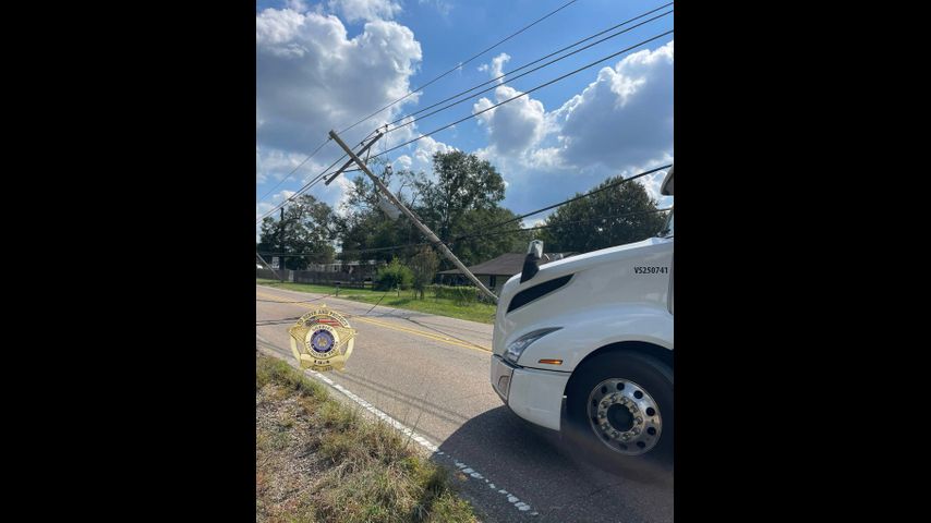 DENHAM SPRINGS — Burgess Avenue is blocked in Denham Springs after a semi-truck hit a utility pole and got tangled in power lines.