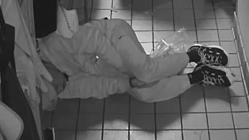 The entire incident was caught on video surveillance. Authorities describe the suspect as an African-American man, dressed in black sweat pants, a hooded sweatshirt, and black sneakers.