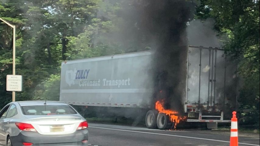 Burning 18-wheeler causes rush hour traffic jam