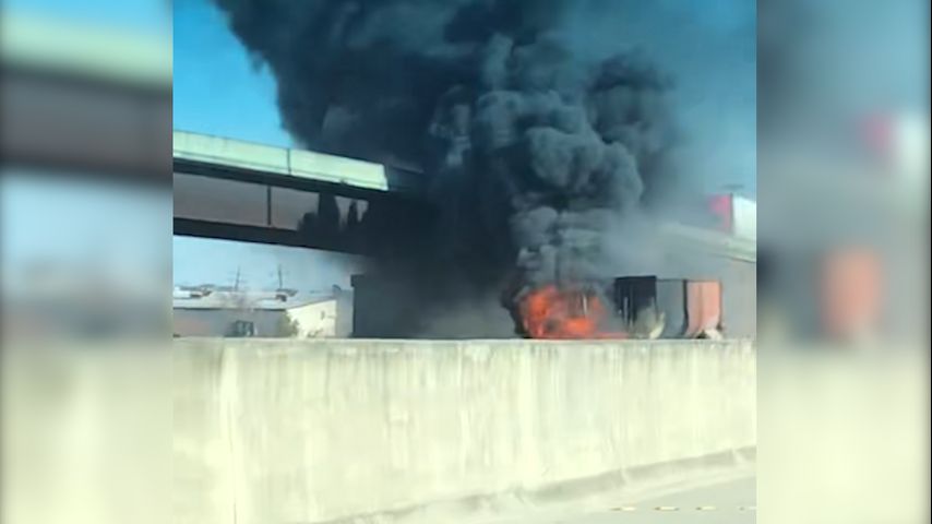 The inferno was first spotted shortly before 2:30 p.m. on the westbound side of the interstate, just past Siegen Lane. It wasn't immediately clear what caused the fire or if anyone was hurt.