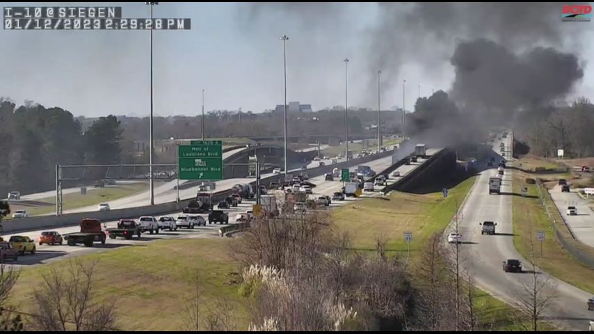 Burning truck snarls traffic on I-10 West near Siegen Lane