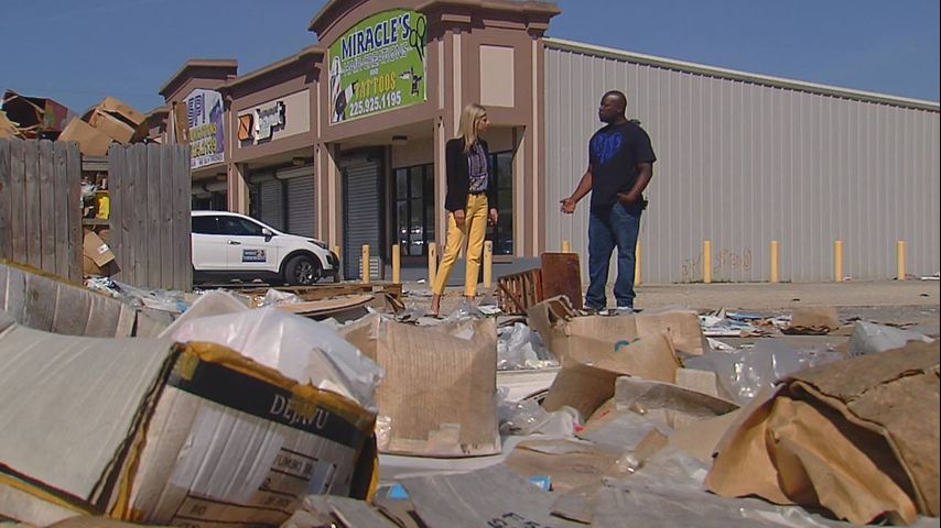 BATON ROUGE - A tenant at a Baton Rouge shopping center is tired of looking at a large pile of trash that's been growing next to his business for months.