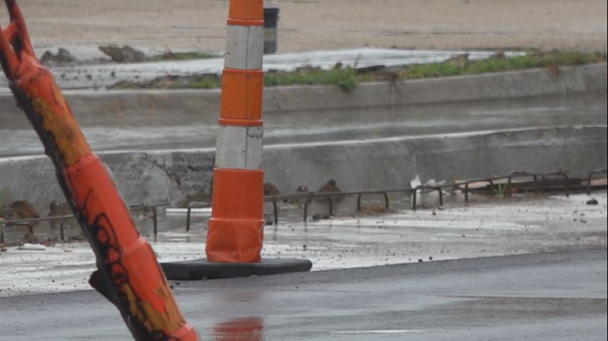 BATON ROUGE - Cones and construction materials still line the sides of Nicholson Drive, and center turn lanes are blocked off.