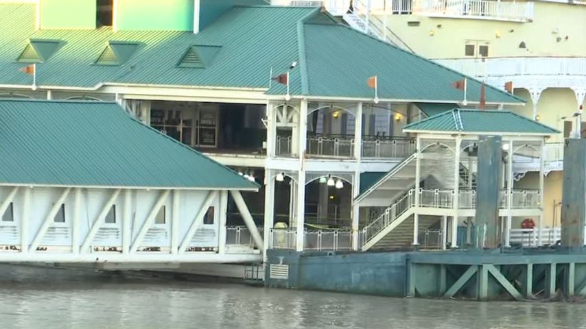 The Baton Rouge Fire Department said Wednesday morning that a cable to the casino's ramp broke, causing some lights and ceiling fans to fall as well as some glass doors. Work was being done on the ramp at the time, and two workers were taken to the hospital in stable condition.