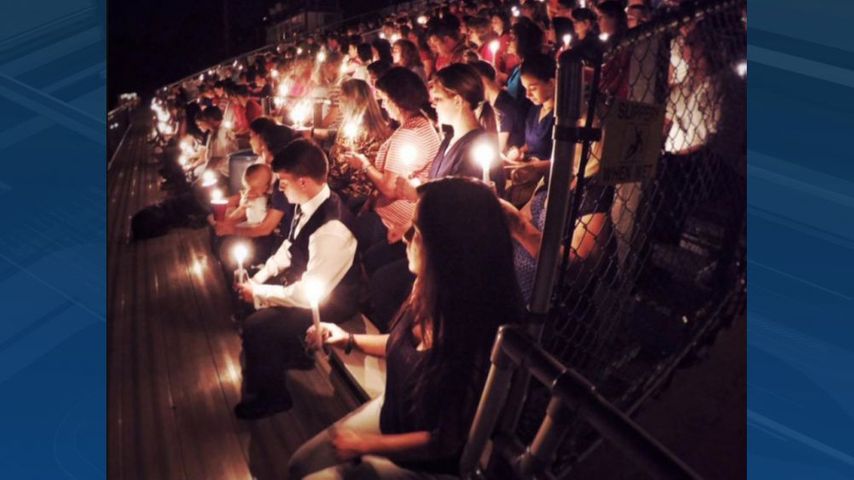 Under a deep, dark sky people lighted candles. The shimmering light cast a glow across the stadium of the Old Live Oak High School.