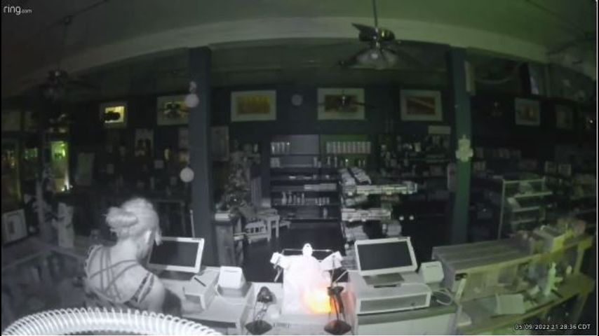 The surveillance video from 9:28 p.m. Monday shows a person riding a bike stopping in front of the grocery store, then throwing a brick right through the window and making their way inside.