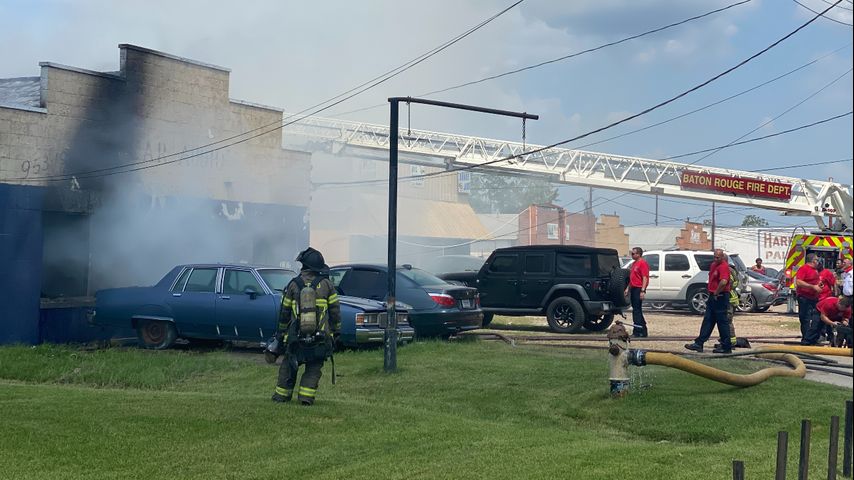Baton Rouge Fire Department said flames were first reported at C.A.R. Audio on Choctaw Drive around 2:30 Monday afternoon. Fire officials said flames were coming from the front corner of the roof of the business.