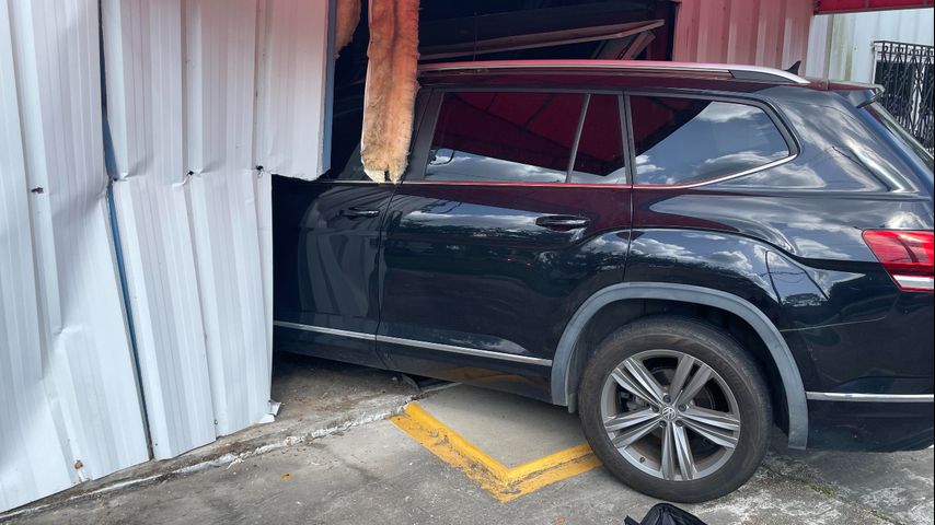Authorities say around 8 a.m., a woman veered off the road and crashed into L&S Automotive on Jefferson Highway. Officials added that the woman said she was attempting to avoid another vehicle.