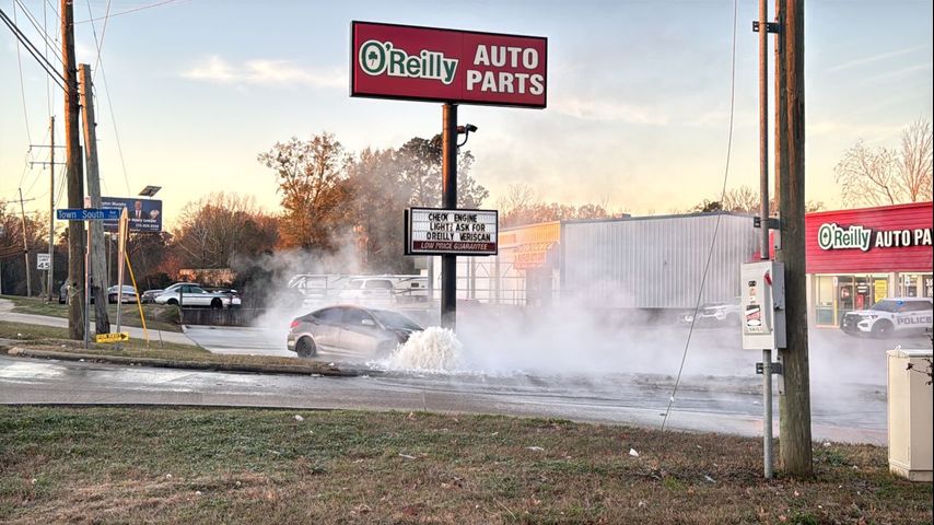 Car crashes into fire hydrant at O'Reilly's Auto Parts along Staring Lane, flooding parking lot, street