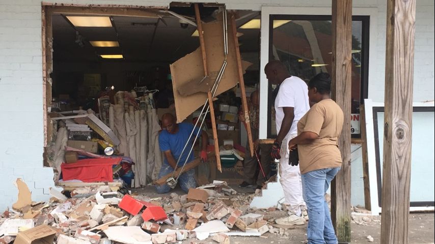 BATON ROUGE - Emergency crews are responding to a vehicle that crashed into a storefront on Coursey Boulevard Sunday around lunchtime.