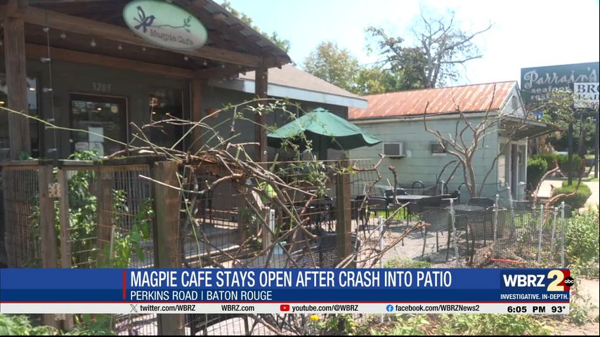 BATON ROUGE - A car drove through the fence and into the patio of Magpie Cafe over the weekend.